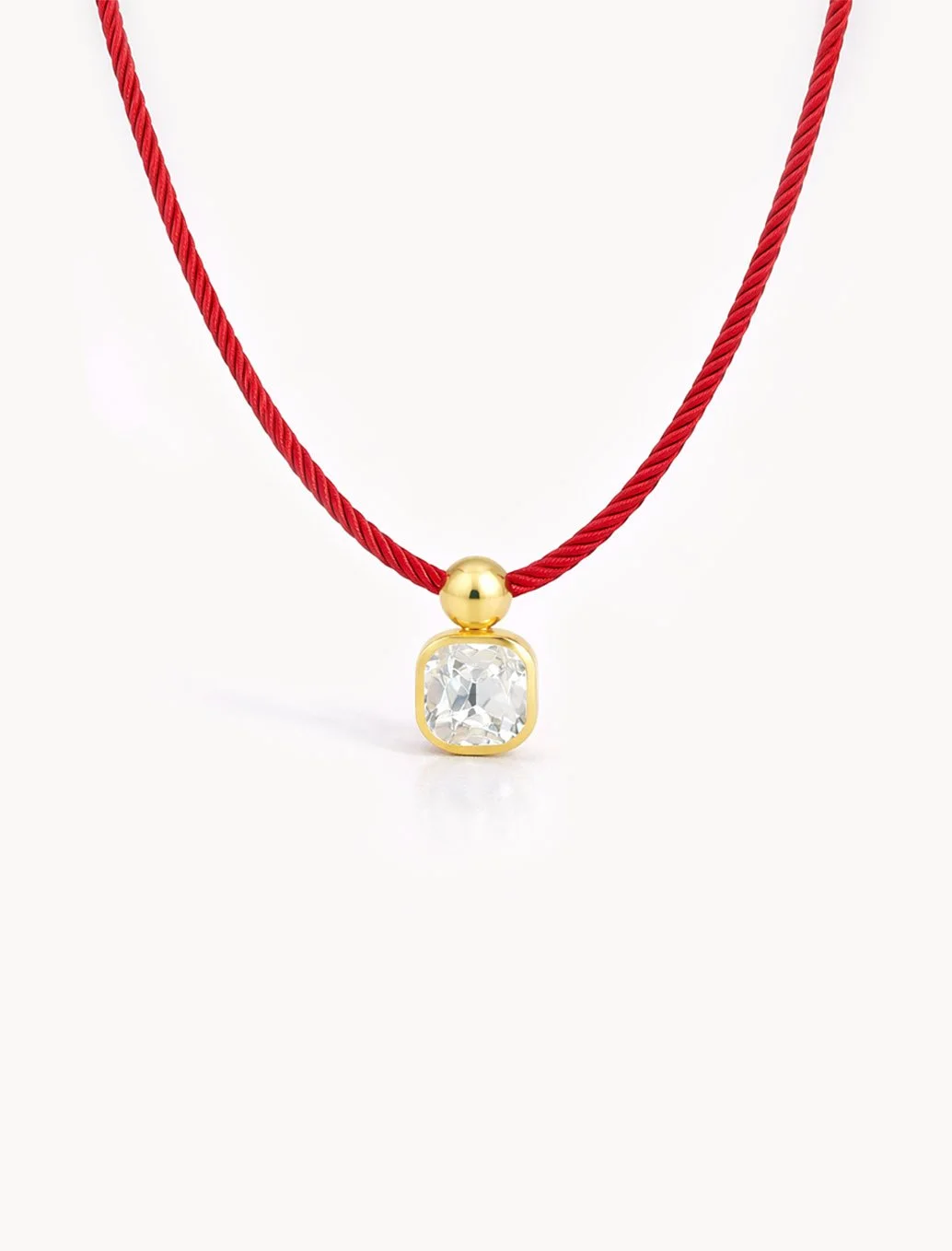 9mm moissanite diamond pendant on 100% silk cord. three station adjustable closure.