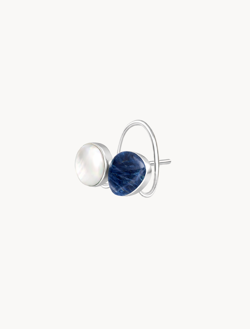 illusion double earring made of sterling silver, shell and sodalite lapis